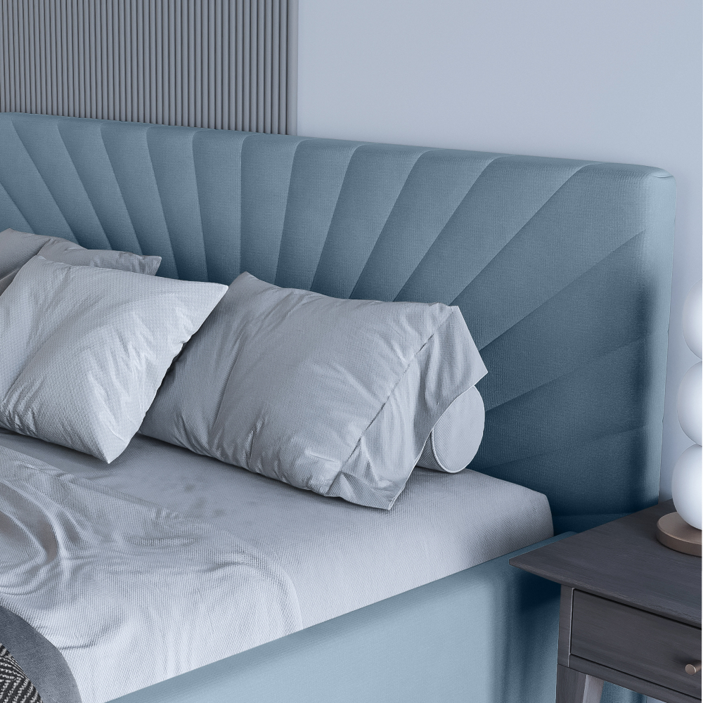 - Кровать с изголовьем в виде лучей - это интересный и оригинальный элемент дизайна интерьера.