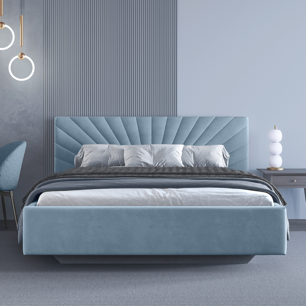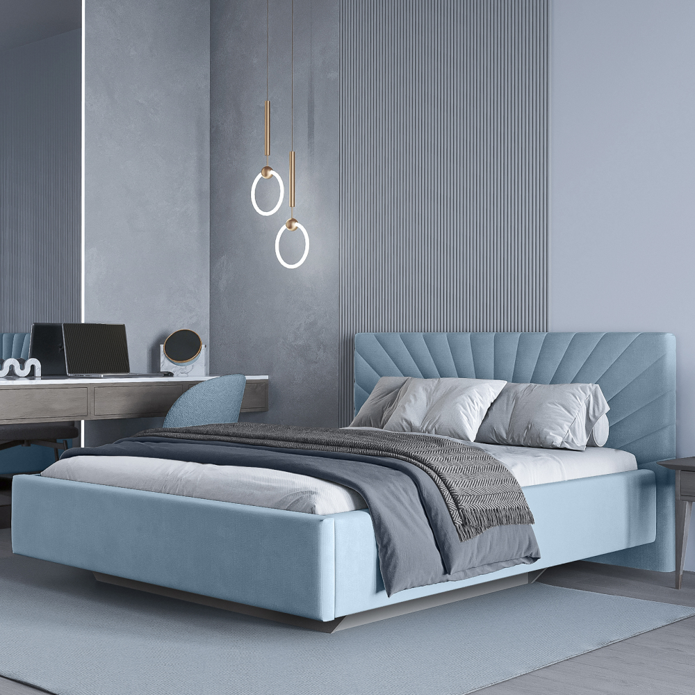 Достоинства данной кровати - это актуальный дизайн в форме исходящих лучей, который отлично впишется в современный интерьер. Парящая кровать один из более оригинальных элементов мебельного дизайна.
