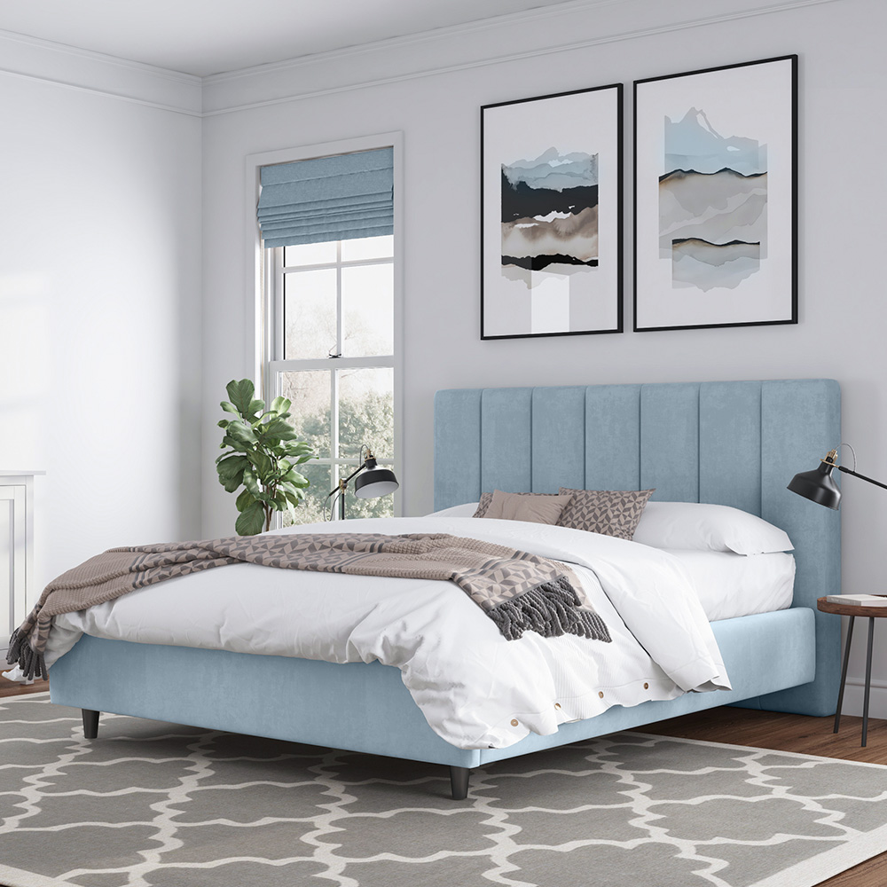 • Изголовье кровати выполнено вертикальными линиями. Данный дизайн актуален и отлично впишется в любой современный интерьер.