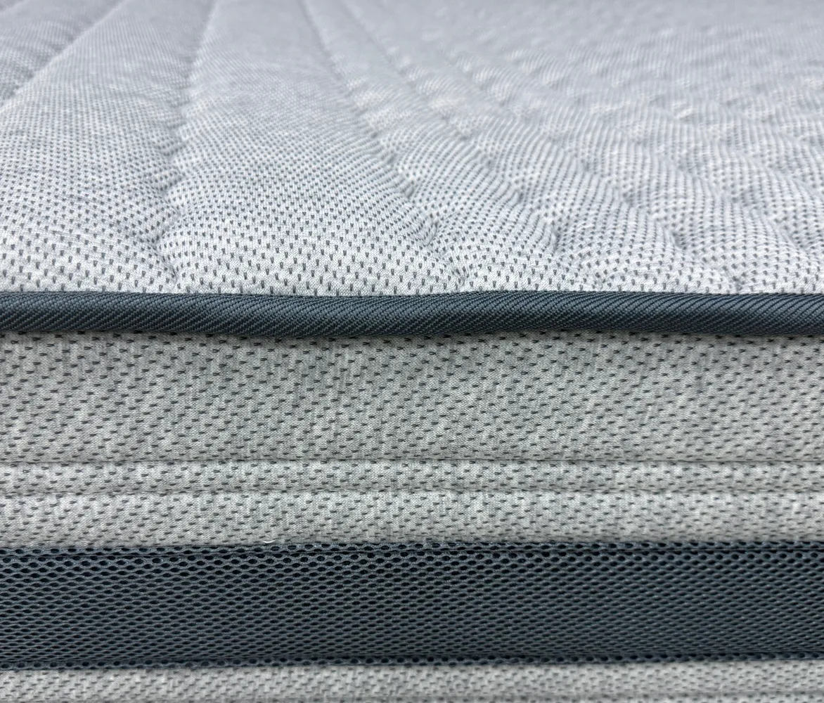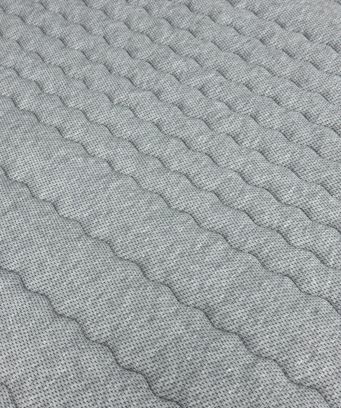 Трикотаж «PESCODY» - Премиальный меланжевый итальянский трикотаж с натуральными волокнами в трендовом приятном сером цвете. Благодаря своей расцветке ткань смотрится стильно и более неприхотлива к незначительным загрязнениям. Натуральные смесовые нити в составе способствуют более эффективному тепло обмену и обладают высокой гигроскопичностью, что обеспечивает комфортный микроклимат спального мест