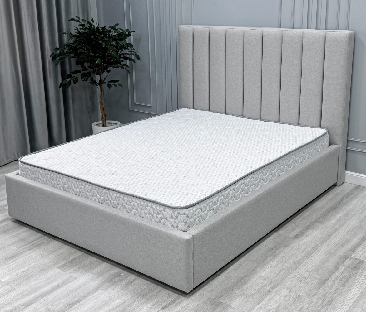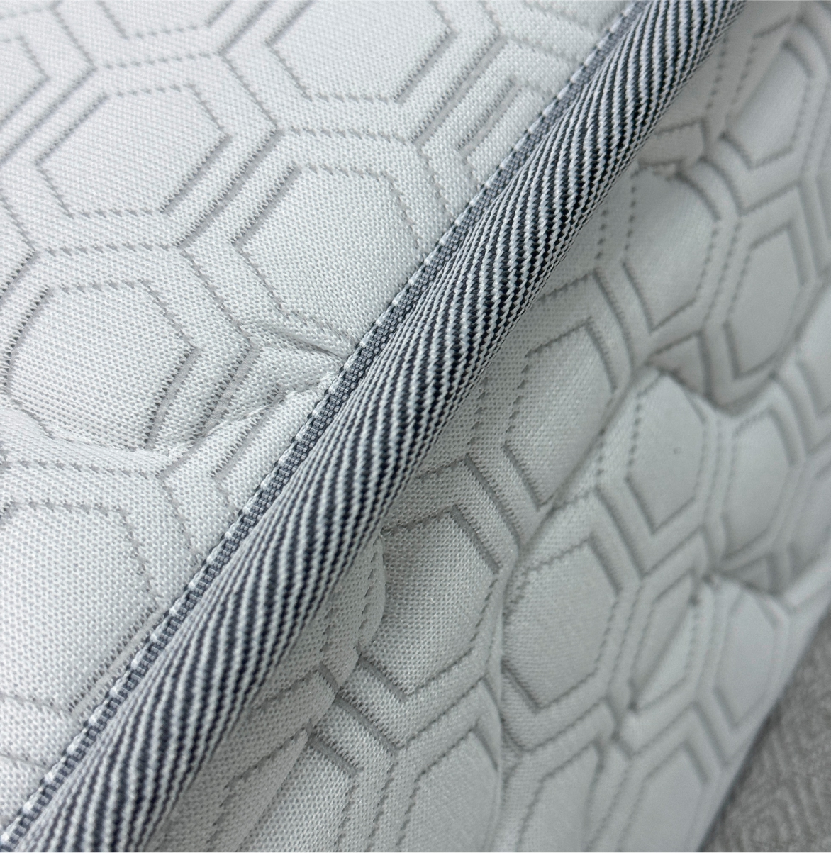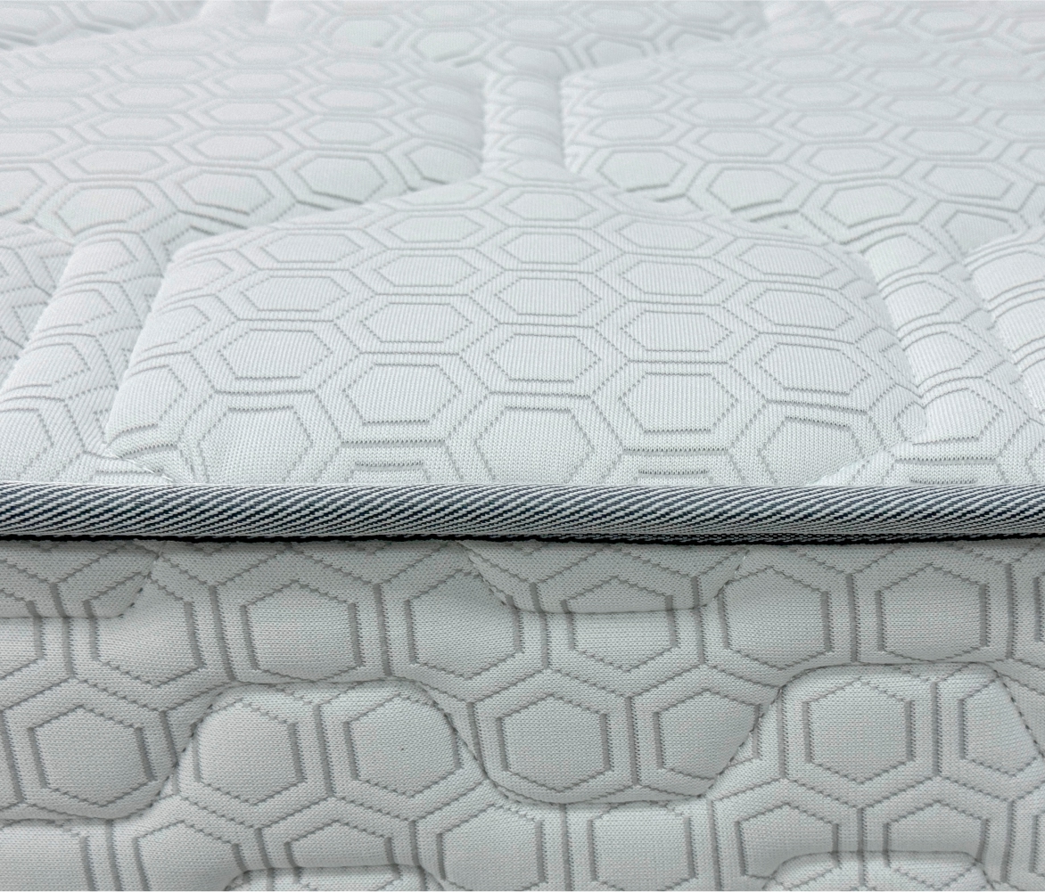 Трикотаж «Carbon» — современный и стильный материал с оригинальным рельефным рисунком «соты», который придаёт матрасу эффектный и премиальный вид. Высокая плотность ткани гарантирует её прочность и долговечность, а эластичная структура обеспечивает идеально ровное прилегание к наполнителю, сохраняя гладкость поверхности на протяжении всего срока службы. Материал обладает хорошей воздухопроницаемостью, что помогает поддерживать комфортный микроклимат во время сна, и устойчив к износу, сохраняя свой внешний вид даже при длительной эксплуатации.