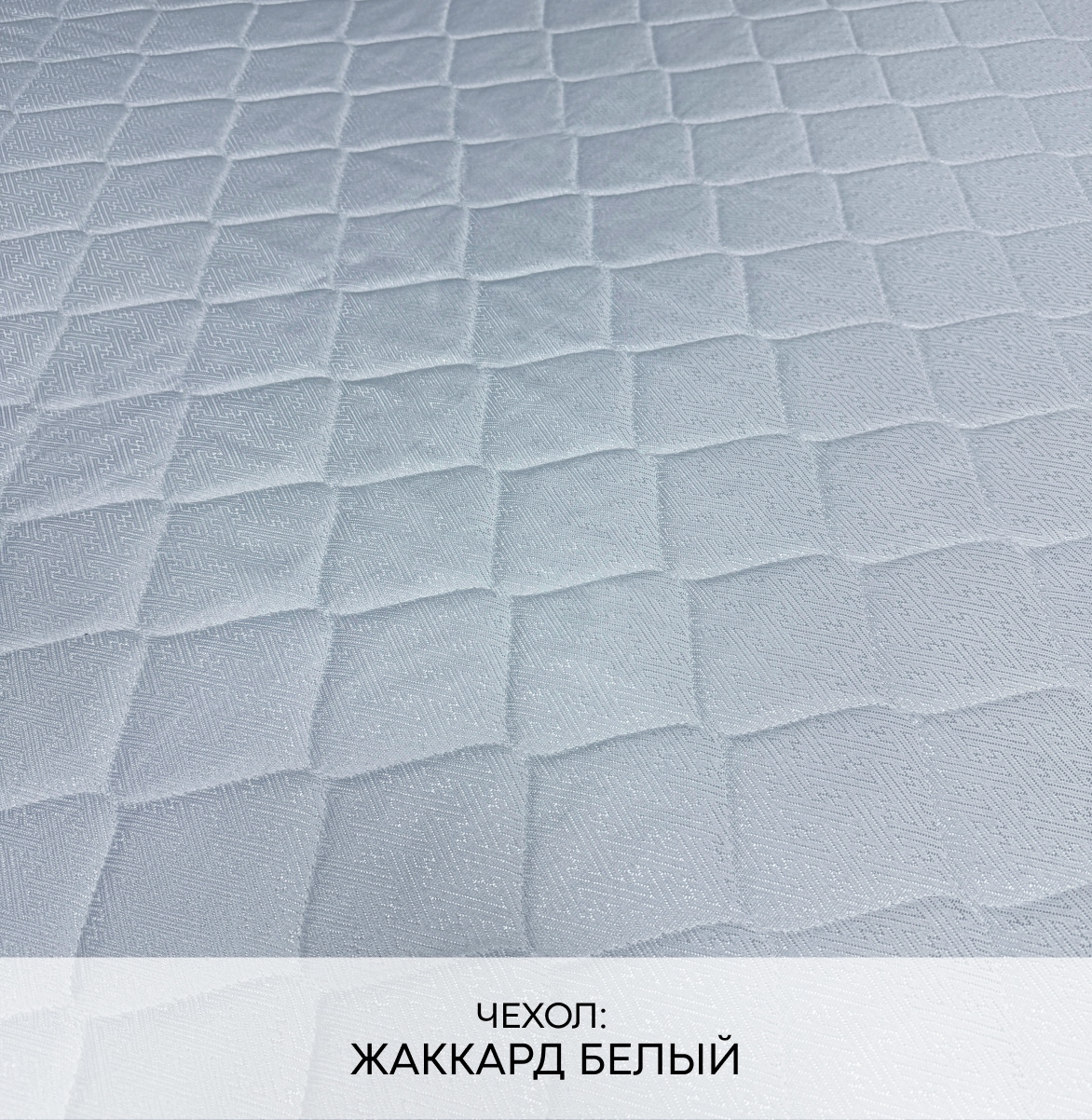 Жаккард белый - это высококачественная ткань, которая является ключевым элементом комфорта любого матраса. Изготовленная из сочетания хлопка и полиэстера, она объединяет мягкость натурального волокна и прочность синтетической нити. Ткань обладает отличными эксплуатационными свойствами: Гипоаллергенность — безопасна для чувствительной кожи. Материал «дышит» — обеспечивает оптимальный микроклимат во время сна. Долговечность — сохраняет форму матраса и внешний вид при длительном использовании.
