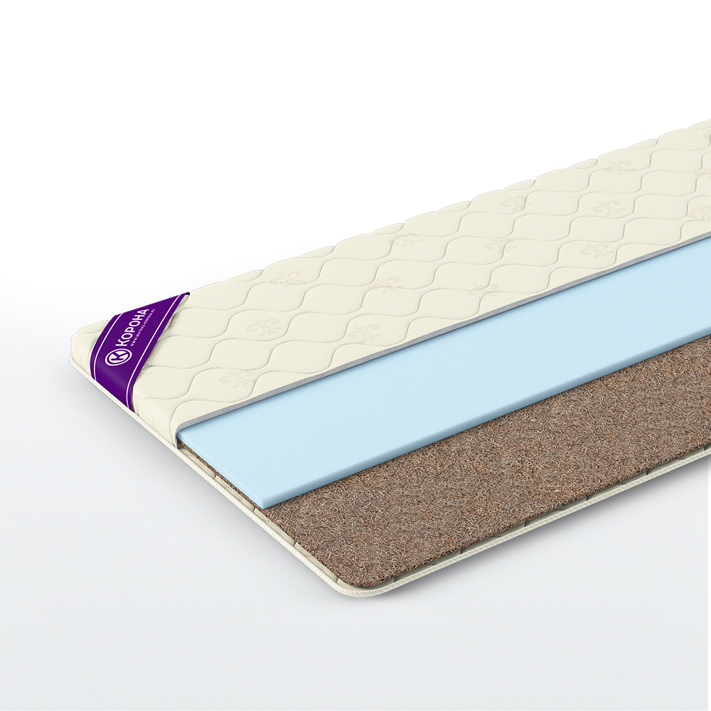 Самая популярная модель, применяемая в основном для раскладных диванов. Кокосовая койра сглаживает неровности и перепады в жесткости между раскладными секциями дивана, делая спальное место более ровным. Гипоаллергенный пенополиуретан, в качестве комфортного наполнителя, хорошо держит весовую нагрузку, не проседает и обеспечивает комфортную поддержку. Во избежание образования заломов и деформации наполнителей данный топпер запрещено скручивать и сгибать.